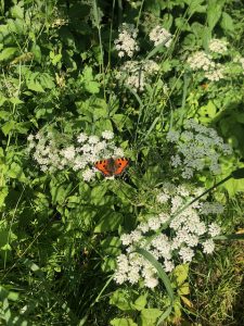 Am Feld- und Waldrand und zwischen unseren Gemüsebeeten stehen riesige Brennesseln, die in diesem Jahr nun schon die zweite Generation Raupen des Tagpfauenauges beherbergen und nähren. Die letzten drei Jahre haben wir vergeblich danach Ausschau gehalten – Schmetterlinge waren nur sehr selten und vereinzelt zu sehen, eigentlich nur ab und zu mal ein Admiral oder ein Kohlweißling. Entsprechend groß ist nun die Freude, dass sich wieder mehr dieser flatternd bunten Lichtwesen einfinden und Leichtigkeit und Sommerglück im Garten verströmen!